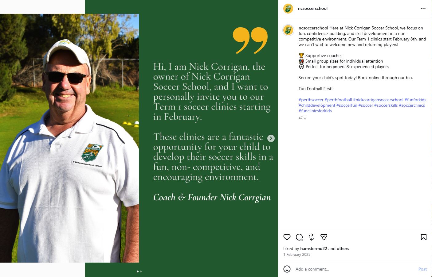 When I first began working with Nick Corrigan Soccer School, the business was in urgent need of a comprehensive brand and digital facelift across both its website and social media platforms. While the program itself delivered genuine value, this was not being reflected online. The existing website and social media presence lacked a clear brand identity, consistency, and direction. Most content consisted of generic, branded flyers with little variation and no defined purpose. There was minimal original content, limited engagement, and almost no clear calls to action designed to speak directly to parents, schools, or prospective clients.